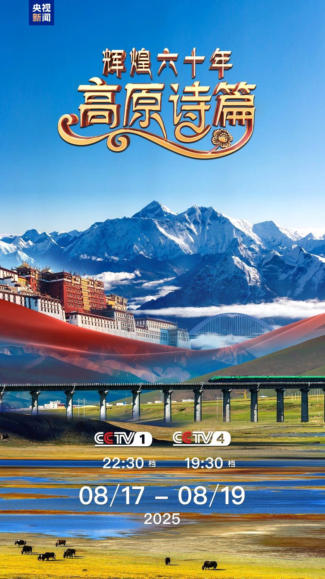 8月17日至19日,鎖定CCTV-1、CCTV-4,跟隨《輝煌六十年:高原詩篇》,見證西藏六十年滄桑巨變。