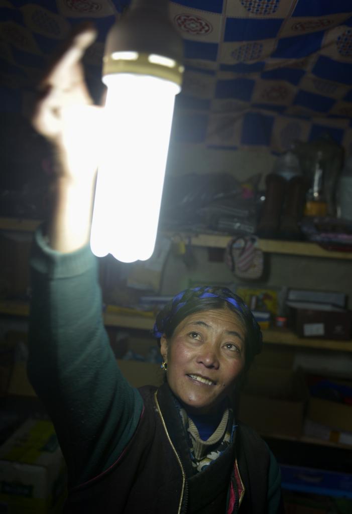 2013年6月7日,西藏浪卡子縣普瑪江塘鄉(xiāng)牧民在家里使用太陽能照明設(shè)備。新華社記者 普布扎西 攝