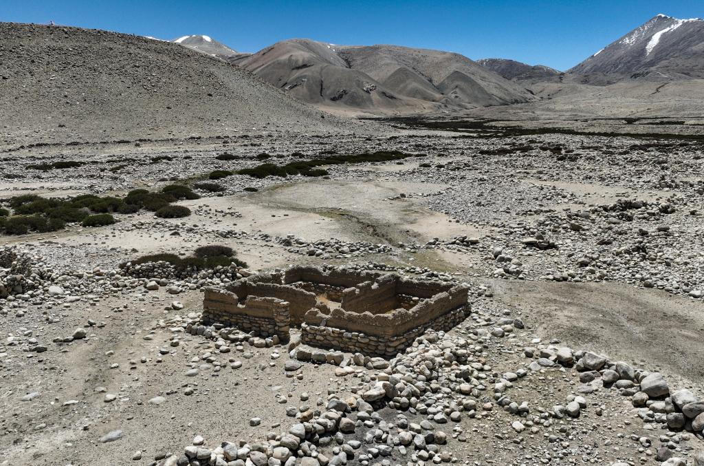 2023年5月28日拍攝的西藏阿里地區(qū)噶爾縣扎西崗鄉(xiāng)典角村在20世紀(jì)60年代修建的“一代房”的殘存。新華社記者 晉美多吉 攝。