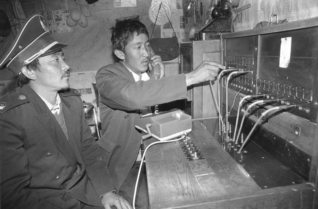 1994年4月16日,西藏江孜縣年堆鄉(xiāng)工作人員正在接電話。新華社記者 土登 攝