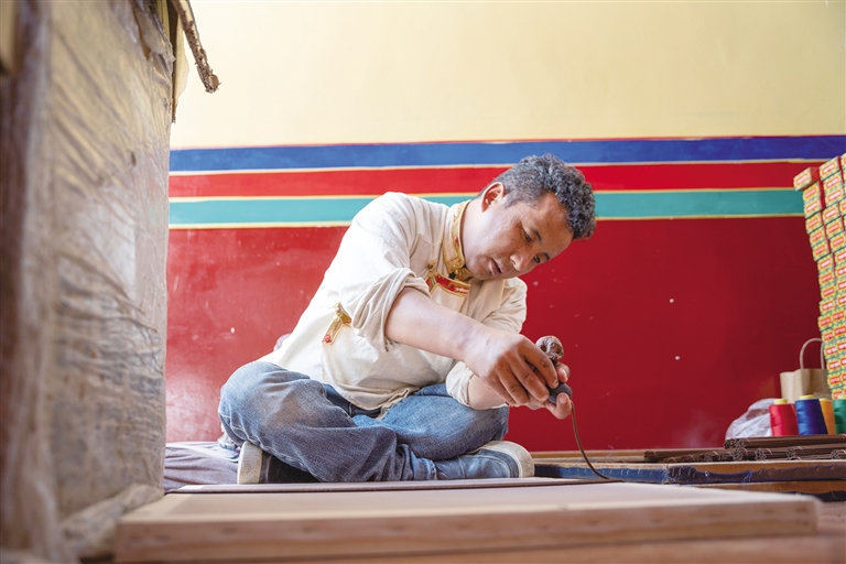 尼木縣普松鄉(xiāng)是著名的“雕刻之鄉(xiāng)”,作為“尼木三絕”之一的普松雕刻是普松鄉(xiāng)群眾世世代代傳承下來(lái)的一項(xiàng)古老技藝。近年來(lái),在尼木縣政府的積極引導(dǎo)和扶持下,普松雕刻這一傳統(tǒng)技藝得以煥發(fā)新生,一把刻刀、一塊木板,在匠人手中如同神奇的畫筆,在鄉(xiāng)村振興的畫卷上繪就出絢麗多彩的致富圖景。