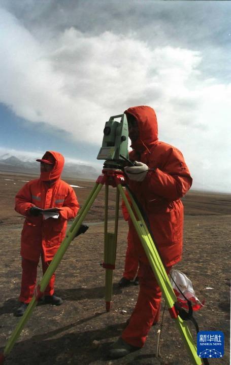 2001年4月,勘測人員在海拔近5000米的四道梁加緊進(jìn)行青藏鐵路的勘測工作。