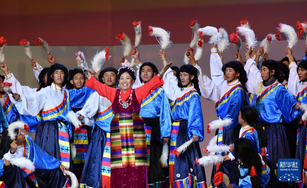 藏族女高音歌唱家才旦卓瑪在第四屆藏博會開幕式文藝演出中(2018年9月7日攝)。