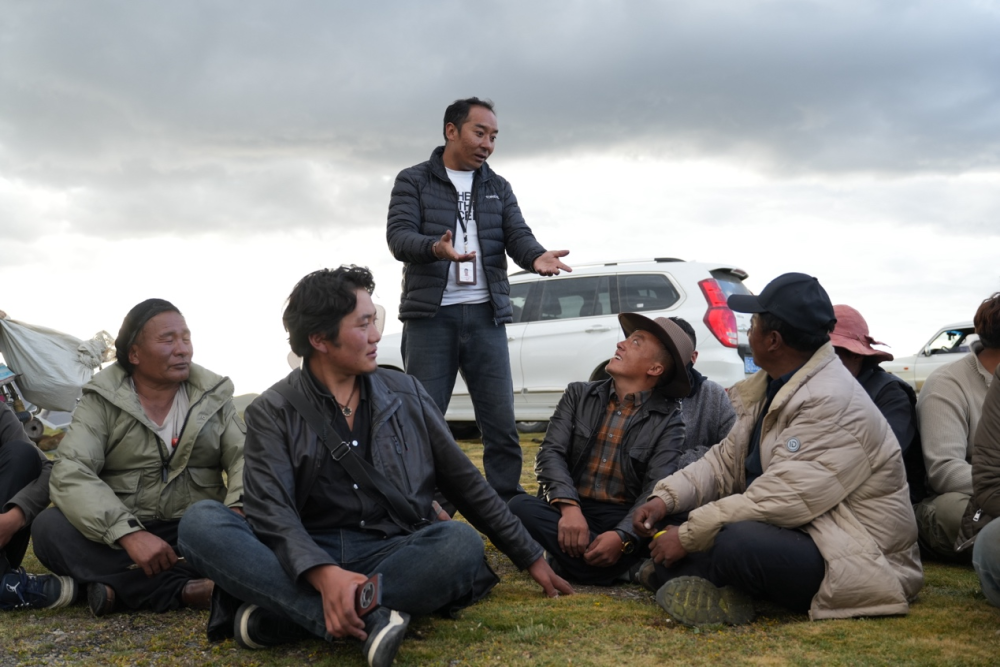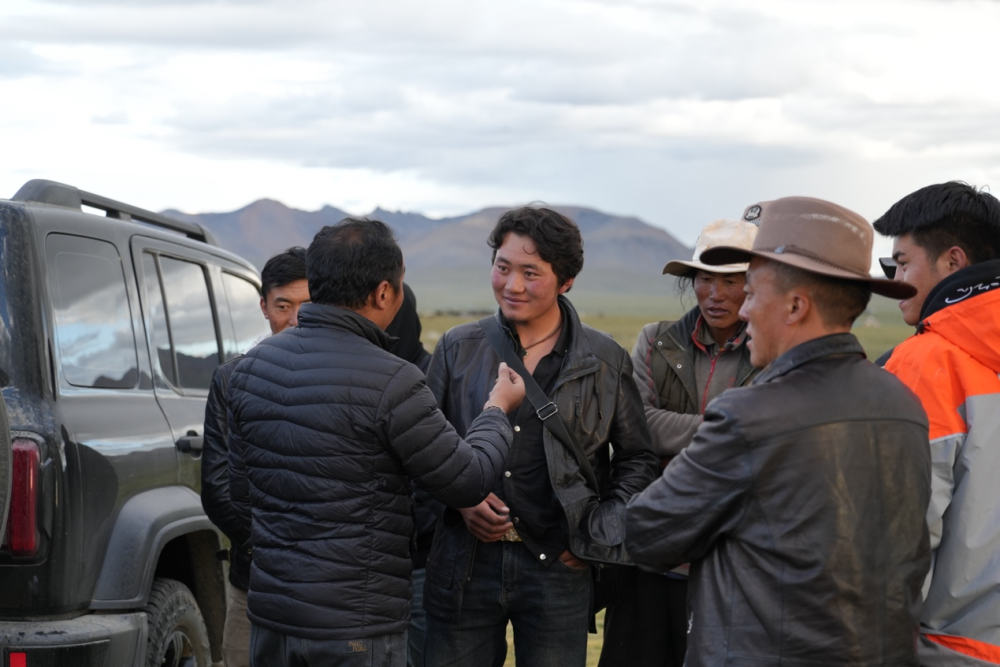 圖為巴登求扎團(tuán)隊(duì)工作人員與牧民交談。 何欣然攝