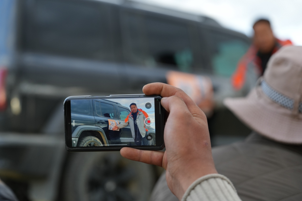圖為牧民用手機(jī)認(rèn)真記錄政策內(nèi)容。何欣然攝