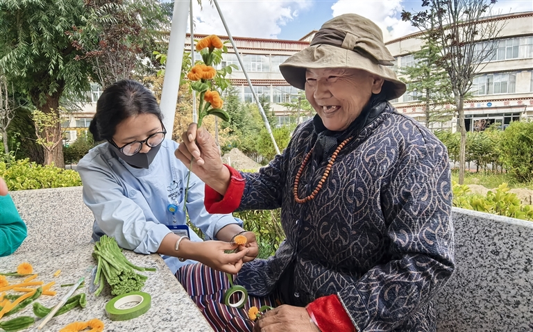 此外,為提升老人們的幸福感,每逢重大節(jié)日,拉薩市社會福利院都會舉辦豐富多彩的文藝演出?!懊磕晡覀兣e辦大大小小的活動不少于200次,前幾天我們就在宗角祿康公園舉辦‘紅歌嘹亮頌黨恩,銀齡歌舞展風(fēng)采’活動,老人們通過紅歌聯(lián)唱、手工展示等形式,展現(xiàn)了他們積極向上的精神風(fēng)貌?!痹黝D珠表示,拉薩市社會福利院通過整合資源、創(chuàng)新服務(wù),開展的各類文化活動有效豐富了老年人的精神文化生活,滿足了老年人對養(yǎng)老院生活品質(zhì)的需求。