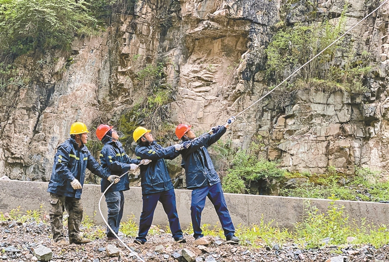西藏開投金橋水電站黨員突擊隊緊急修復(fù)廠壩線,力保防洪度汛安全。