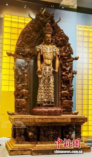 圖為首次展出的檀香木觀音菩薩。趙延 攝