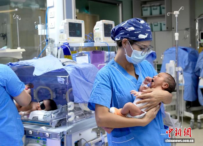 9月5日,西藏阜康醫(yī)院新生兒科內(nèi),護(hù)士正在安撫新生兒。西藏自治區(qū)成立60周年西藏婦女兒童事業(yè)發(fā)展情況發(fā)布會(huì)5日在拉薩召開(kāi)。發(fā)布會(huì)介紹,西藏孕產(chǎn)婦死亡率、嬰兒死亡率分別降至34.94/10萬(wàn)、4.32‰,60年來(lái),西藏婦女兒童衛(wèi)生健康水平顯著提高。中新社記者 李林 攝