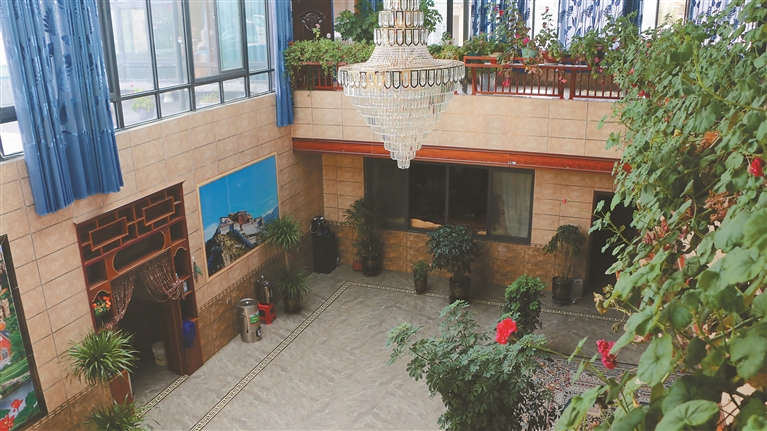 “現(xiàn)在的日子,以前想都不敢想?!眲偨M穿好睡衣從浴室出來,倒上一杯酥油茶,愜意地靠在沙發(fā)上。陽光穿過屋頂?shù)牟A旎ò?,在一樓墻壁投下斑駁的光影。望著二樓的房間,剛組回憶起了半個多世紀(jì)前。