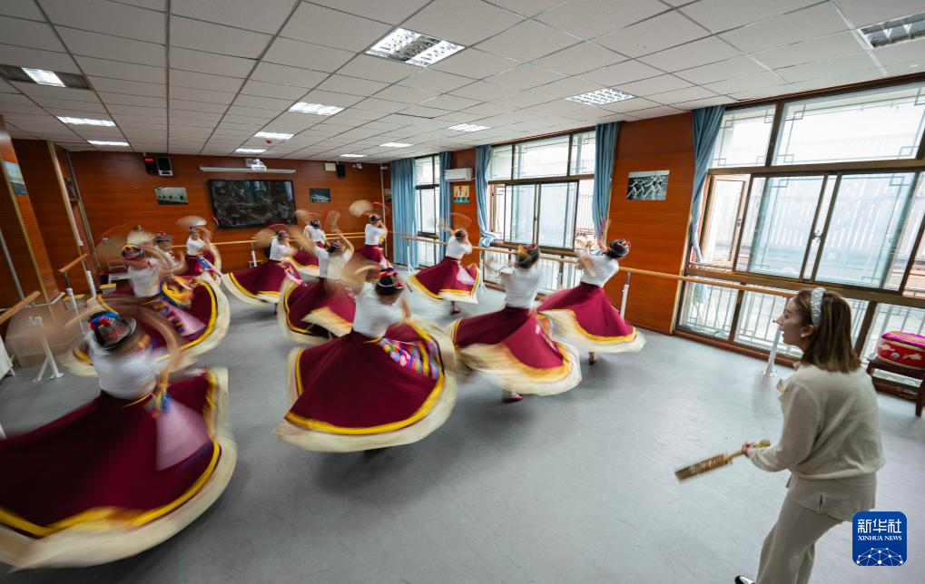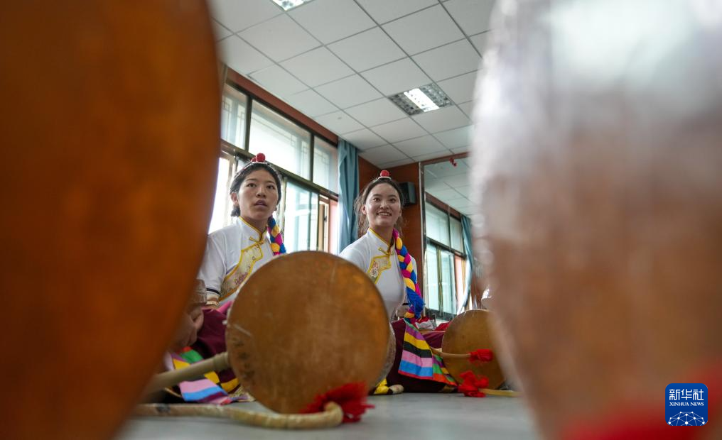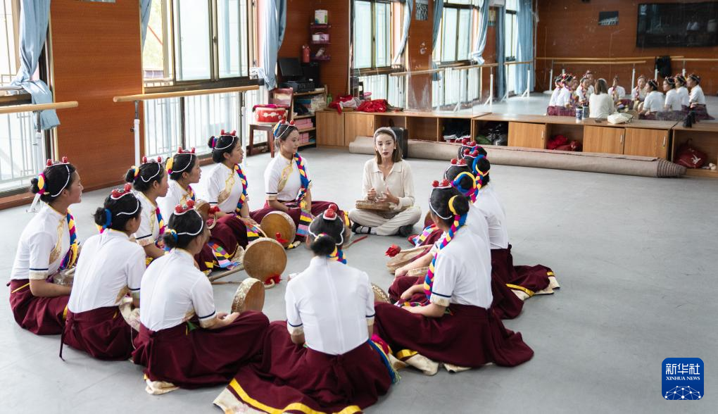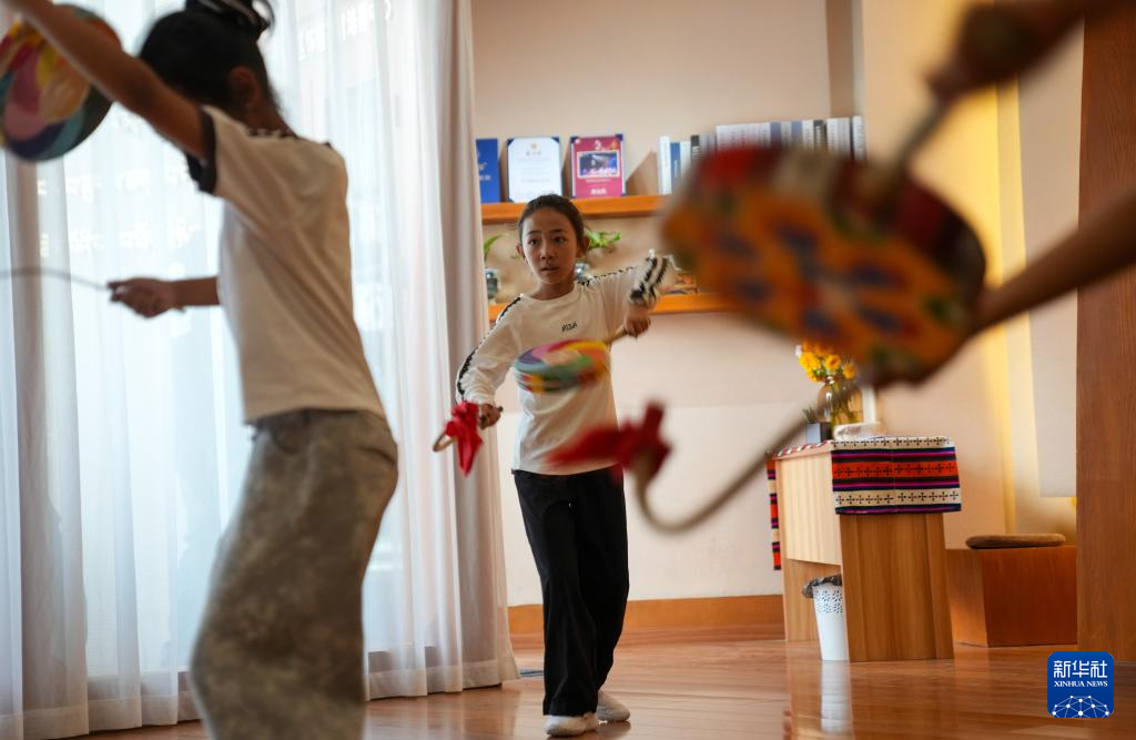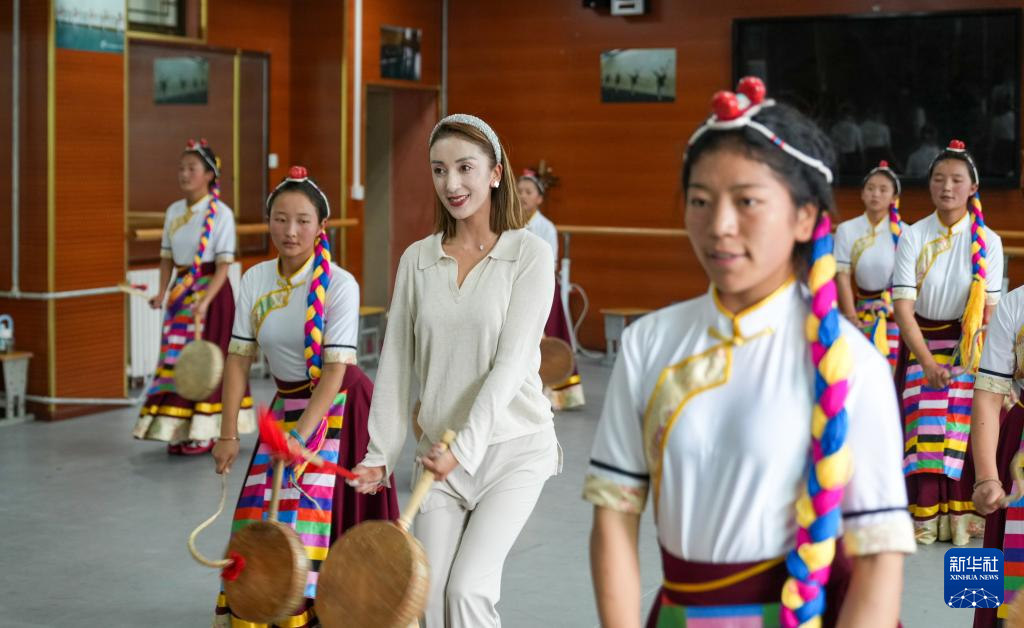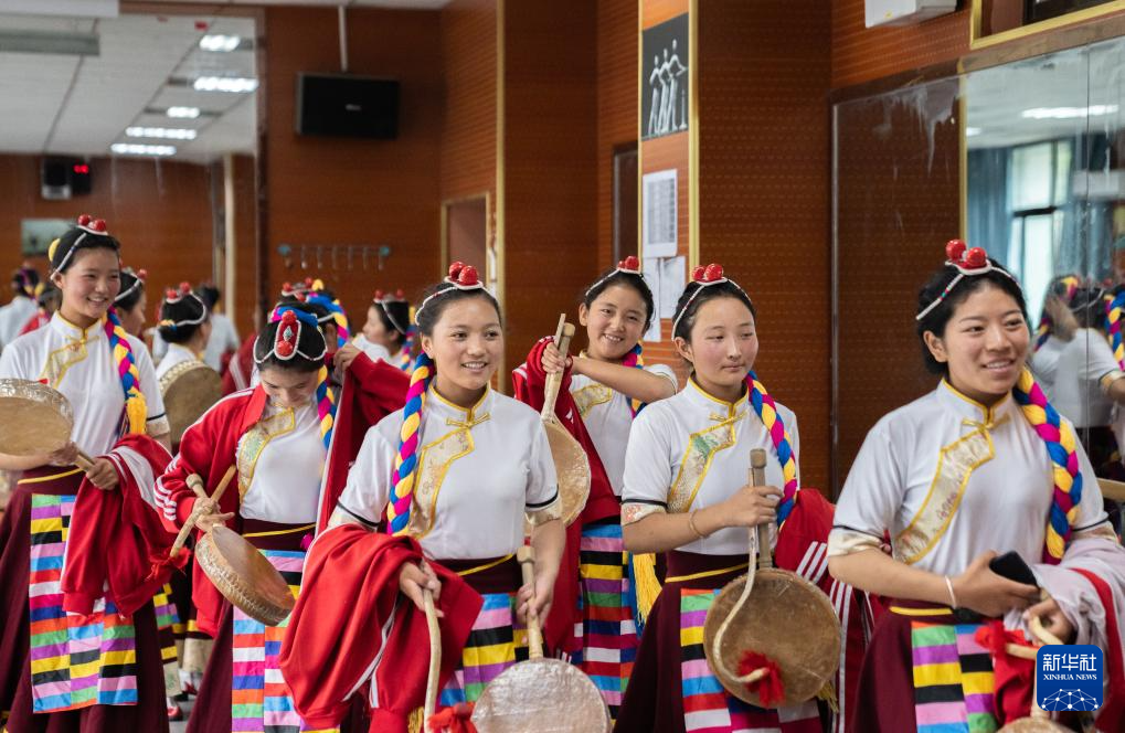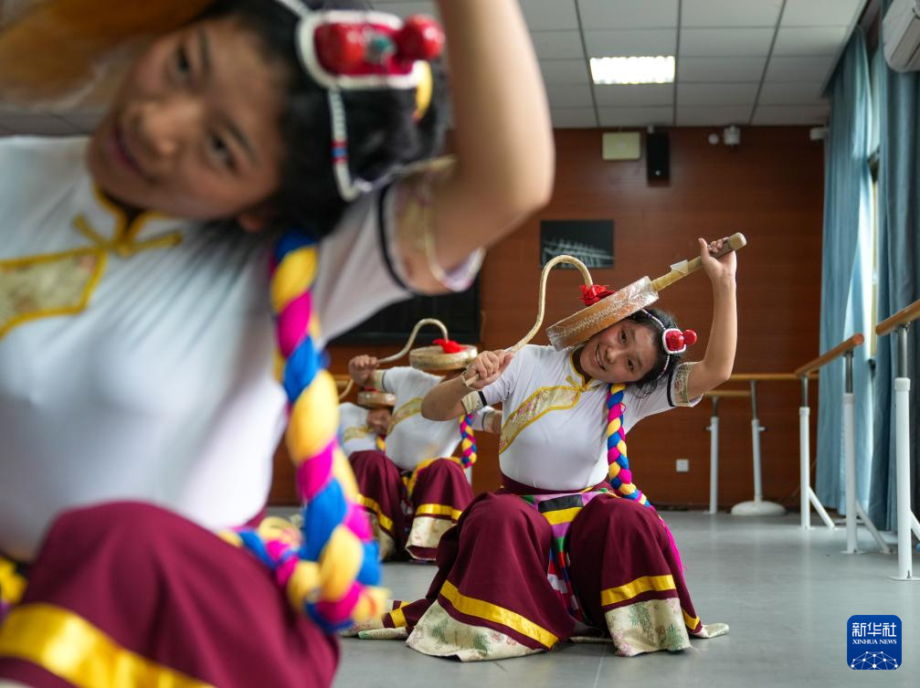 9月9日,在拉薩市第二中等職業(yè)技術(shù)學(xué)校,孩子們?cè)诰毩?xí)熱巴舞。新華社記者 張笑宇 攝