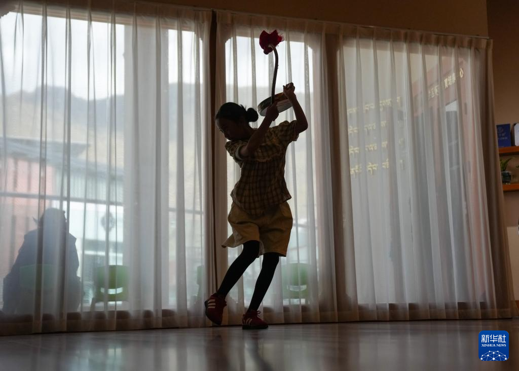 9月13日,在拉薩市塔耶梅朵美育培養(yǎng)中心,孩子們?cè)诰毩?xí)熱巴舞。新華社記者 晉美多吉 攝