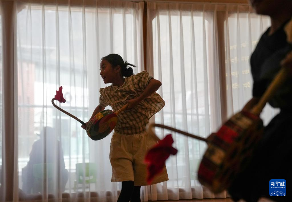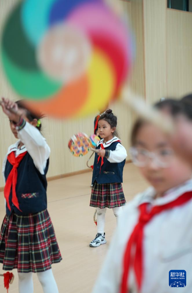 9月11日,在拉薩市實(shí)驗(yàn)小學(xué),孩子們?cè)诰毩?xí)熱巴舞。新華社記者 晉美多吉 攝