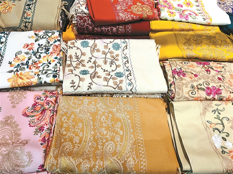 圖為進(jìn)口羊毛披肩。記者 央金 攝