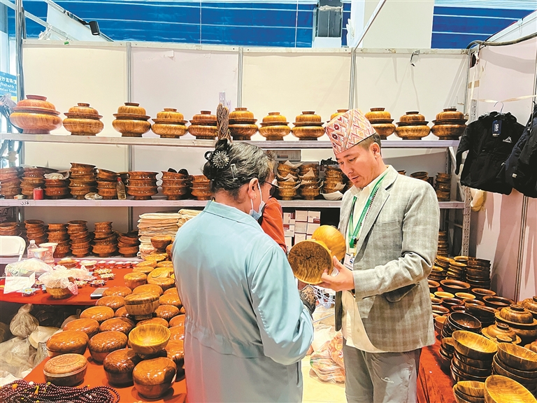 圖為展銷的木制容器。記者 央金 攝