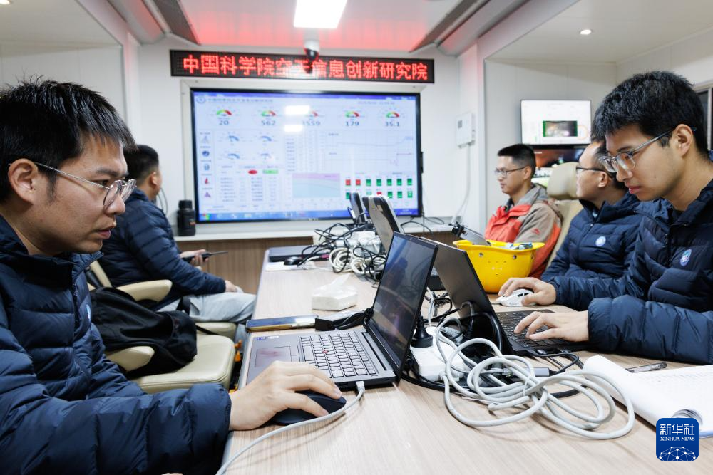9月18日,“極目一號”浮空艇大氣觀測試驗現(xiàn)場控制室,科研人員在觀察試驗進(jìn)展。新華社記者 金立旺 攝