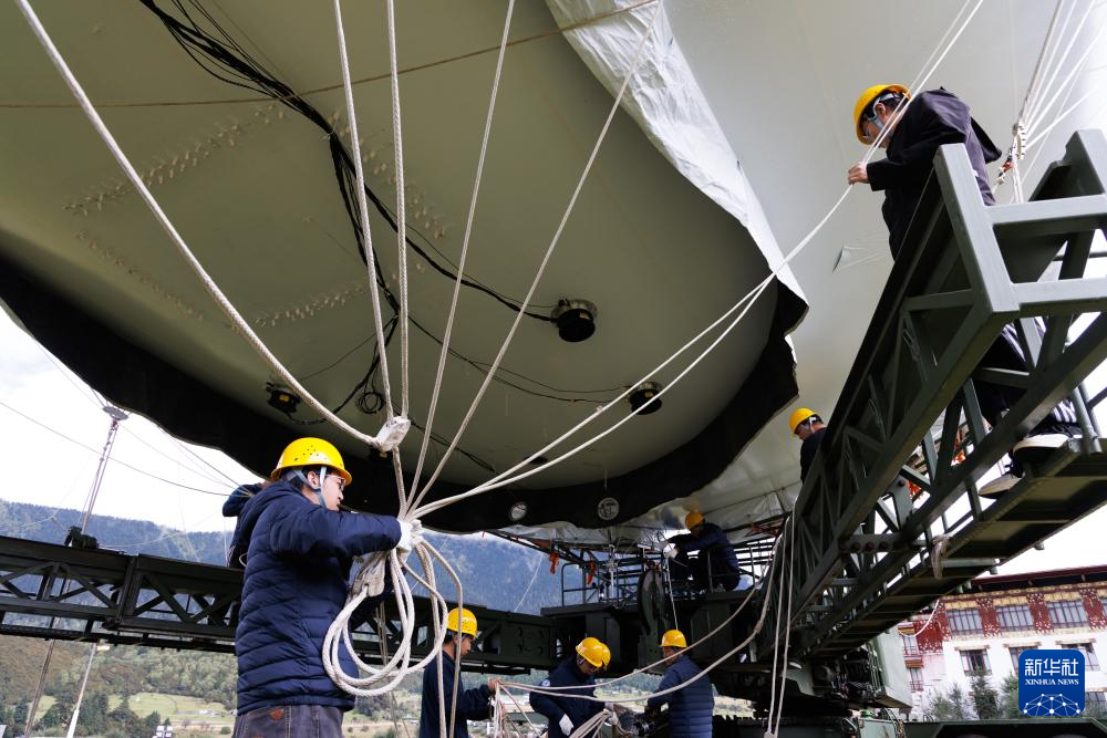 9月18日,極目一號”浮空艇大氣觀測試驗現(xiàn)場,科研人員在調(diào)試觀測載荷。新華社記者 金立旺 攝