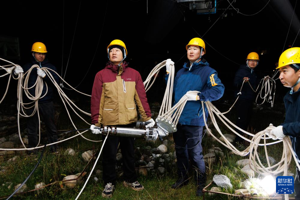 9月18日,“極目一號”浮空艇大氣觀測試驗現(xiàn)場,科研人員在操作鼻系索。新華社記者 金立旺 攝