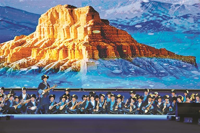 開(kāi)幕式通過(guò)“線上直播+現(xiàn)場(chǎng)觀演”模式,為現(xiàn)場(chǎng)各界來(lái)賓、干部群眾及線上觀眾,呈現(xiàn)了一場(chǎng)內(nèi)容豐富、形式多元、內(nèi)涵深刻的視聽(tīng)盛宴。此次演出時(shí)長(zhǎng)約80分鐘,投入演職人員300余人次,共呈現(xiàn)13個(gè)特色節(jié)目。演出以弘揚(yáng)優(yōu)秀傳統(tǒng)文化和鑄牢中華民族共同體意識(shí)為基調(diào),大膽革新藝術(shù)表達(dá)形式,將“音、舞、詩(shī)、畫(huà)”巧妙融合,并鑲嵌濃郁的阿里地域文化元素,通過(guò)多元文化交融的舞臺(tái)敘事,生動(dòng)詮釋中華民族“多元一體、和諧共生”的深刻內(nèi)涵,實(shí)現(xiàn)歷史與人文的激情碰撞。