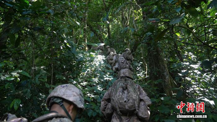 圖為巡邏官兵穿越密林區(qū)。付麗豪 攝