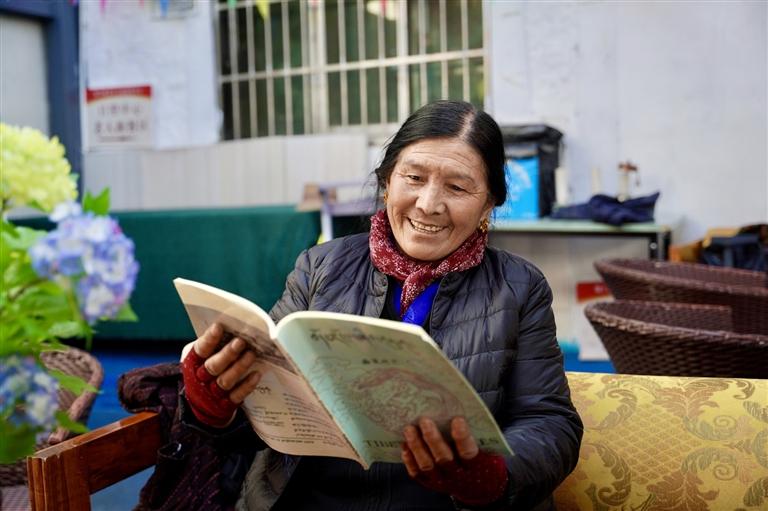 62歲的巴桑卓瑪也在課堂里找回了新的生活樂趣?!耙郧拔也蛔R字,來這兒一年多,不僅學會了讀和寫,還學到了很多新知識。”巴桑卓瑪說,“現(xiàn)在生活好了,就想多學些新東西,每天都盼著來教室,根本不想待在家里。當初也是聽大家都說這里好,我才來的,現(xiàn)在覺得來對了!”