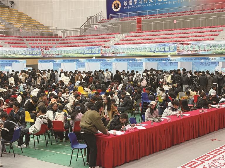 就業(yè)援藏,是保障和改善民生的頭等大事。依托央企就業(yè)援藏機(jī)制,西藏自治區(qū)教育廳高校畢業(yè)生就業(yè)指導(dǎo)服務(wù)中心聯(lián)合國務(wù)院國資委中智集團(tuán)、自治區(qū)國資委,經(jīng)過多輪磋商座談,精準(zhǔn)選定4所高校作為宣講站點,將優(yōu)質(zhì)央企資源直接送到西藏高校畢業(yè)生身邊,組織了此次專場招聘會。