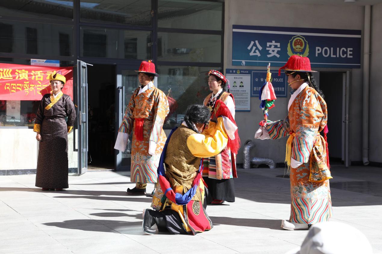 本次巡演以鑄牢中華民族共同體意識(shí)為主線,緊扣“弘揚(yáng)傳統(tǒng)文化·共賞戲曲魅力”主題,南尼古爾確藏戲隊(duì)精心編排了《朗薩雯波》等8個(gè)經(jīng)典藏戲劇目。演員們身著傳統(tǒng)服飾,以精湛的演技、悠揚(yáng)的唱腔和生動(dòng)的肢體語言,生動(dòng)展現(xiàn)了藏戲藝術(shù)的魅力,將劇中人物形象刻畫得栩栩如生,展示藏戲歷史淵源、藝術(shù)特色及非遺保護(hù)成果,進(jìn)一步提升了群眾對(duì)傳統(tǒng)文化的認(rèn)同感和保護(hù)意識(shí),贏得了現(xiàn)場(chǎng)群眾的陣陣掌聲與喝彩。