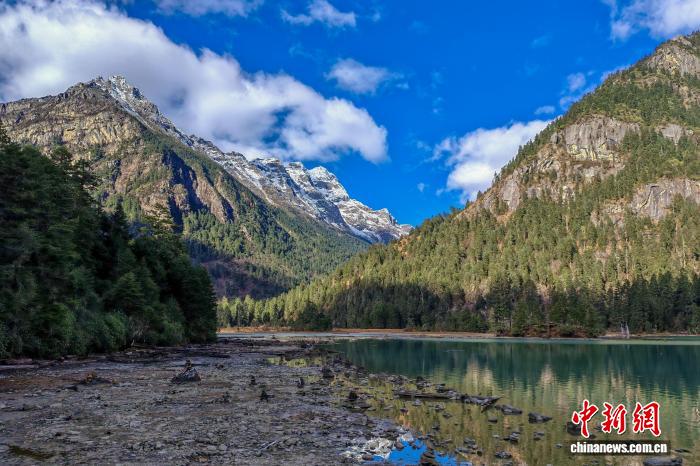 圖為11月9日,西藏自治區(qū)林芝市工布江達(dá)縣錯高鄉(xiāng)羅池村周邊的原始森林和雪山。江飛波 攝