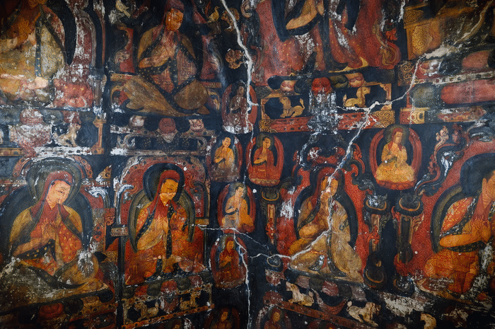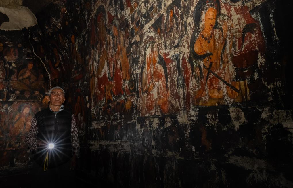 強巴次仁倚著洞口,聽著仁增旺扎的講解,瞇著眼望向那些畫。他看不太清壁畫的細(xì)節(jié)了,但半輩子的守護(hù),已讓壁畫像是他生活的一部分——也是他所理解世界的一部分。