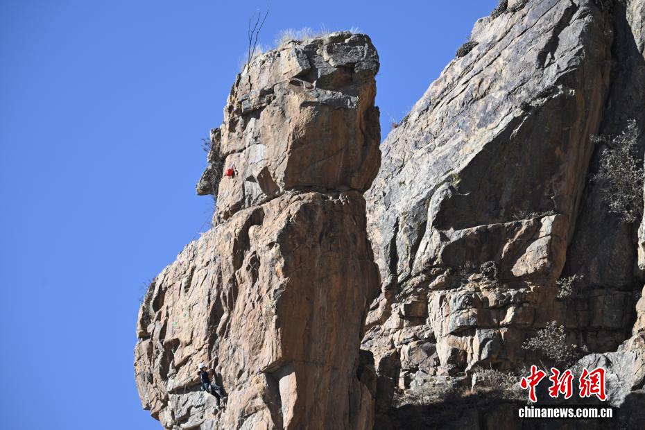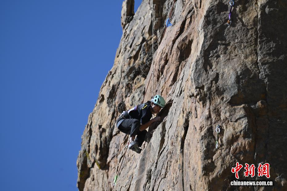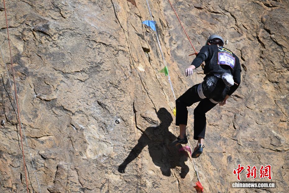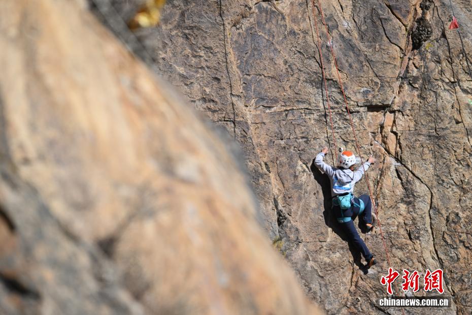 11月29日,2025西藏自治區(qū)攀巖自然巖壁公開賽在拉薩市奪底溝吉倉自然巖壁場地開賽。來自中國全國的70名運(yùn)動員、高校學(xué)生及社會攀巖愛好者參賽。中新社記者 貢嘎來松 攝