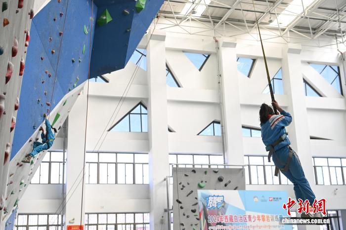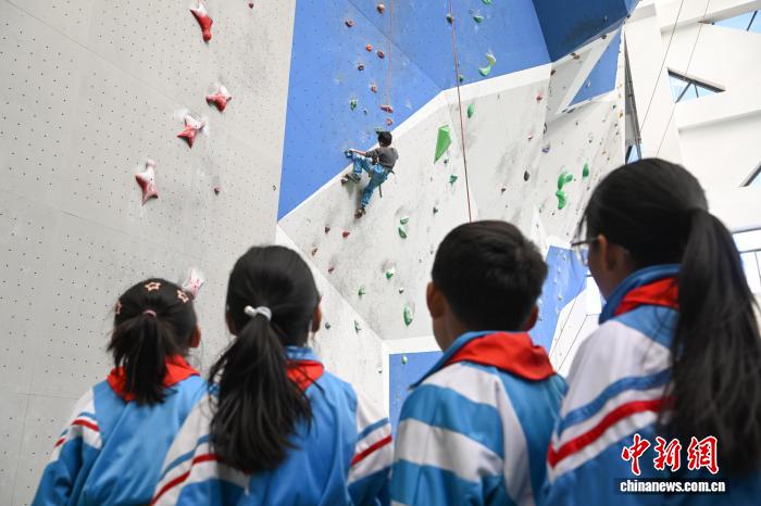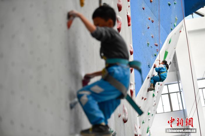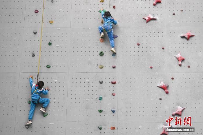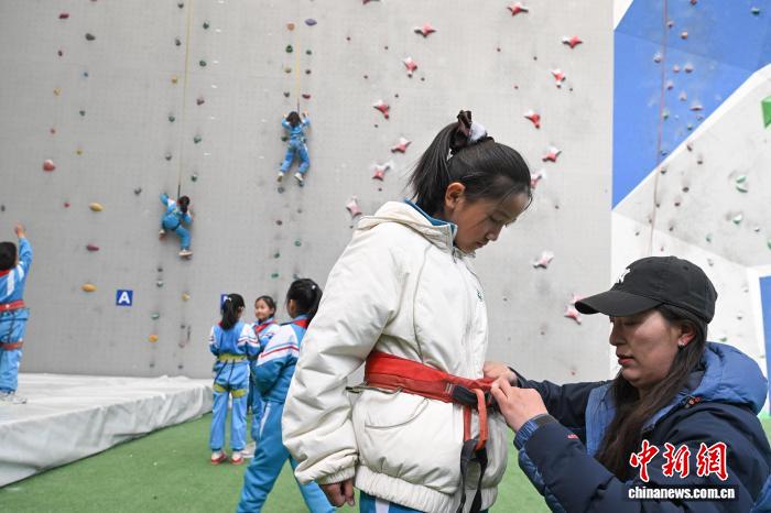 12月5日,西藏登山隊在拉薩市實驗小學持續(xù)推進“攀巖進校園”興趣班活動。據悉,該興趣班自2025年5月開設,面向三四年級學生,每周星期五下午組織40余名學生前往西藏自治區(qū)競技體育管理中心攀巖館,開展攀巖技術學習與興趣培養(yǎng)。圖為拉薩市實驗小學的學生在學習攀巖。中新社記者 貢嘎來松 攝