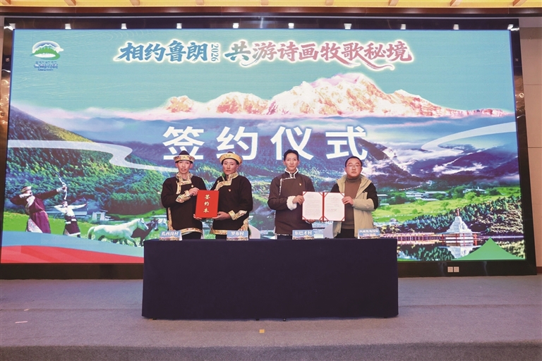現(xiàn)場(chǎng),還舉行了簽約儀式,魯朗東巴才村、羅布村、扎西崗村村委會(huì)代表與拉薩多家優(yōu)質(zhì)旅行社簽訂合作意向協(xié)議。雙方圍繞文旅深度融合發(fā)展趨勢(shì),聚焦沉浸式體驗(yàn)、定制化旅游等細(xì)分領(lǐng)域展開(kāi)深入交流,達(dá)成多項(xiàng)合作共識(shí),將進(jìn)一步拓寬魯朗景區(qū)的客源渠道,提升品牌影響力。