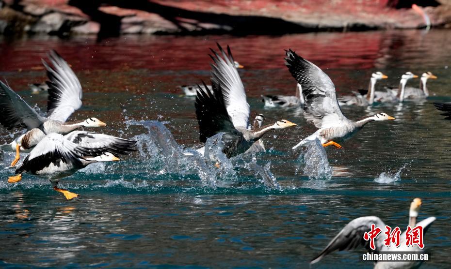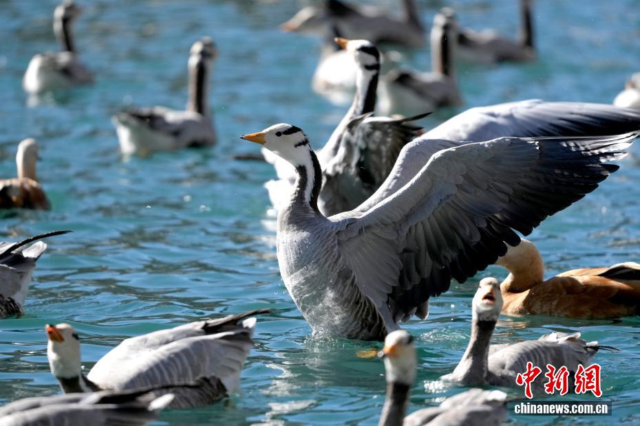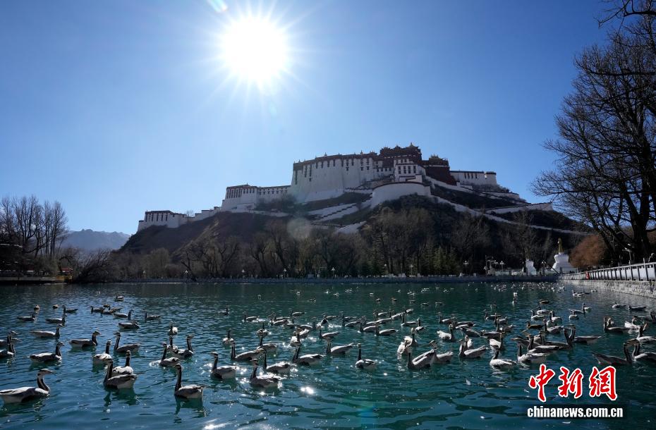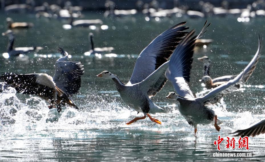 12月17日,西藏拉薩市區(qū)宗角祿康公園,大批斑頭雁“集結(jié)”越冬。成群結(jié)隊(duì)的斑頭雁等越冬候鳥吸引市民游客駐足觀賞、拍照留念。圖為宗角祿康公園越冬的斑頭雁。