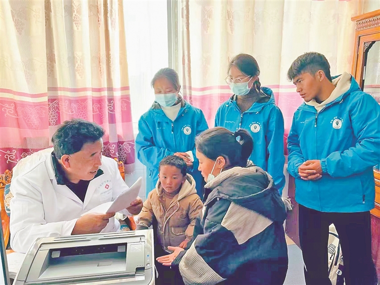 在志愿服務(wù)環(huán)節(jié)中,學(xué)生們體會到了付出的快樂。在日喀則市定日縣震區(qū)安置點,他們消毒防疫、發(fā)放藥品、疏導(dǎo)群眾情緒;在鄉(xiāng)村社區(qū),他們?yōu)榇迕駵y量血壓、普及健康常識、設(shè)置手機(jī)地震預(yù)警;在知識小課堂上,為學(xué)生補(bǔ)課輔導(dǎo)、開展環(huán)保宣傳。這些看似瑣碎的小事,讓他們切實感受到了學(xué)醫(yī)者的社會價值,也錘煉了他們溝通協(xié)作、應(yīng)急應(yīng)變的實戰(zhàn)能力。