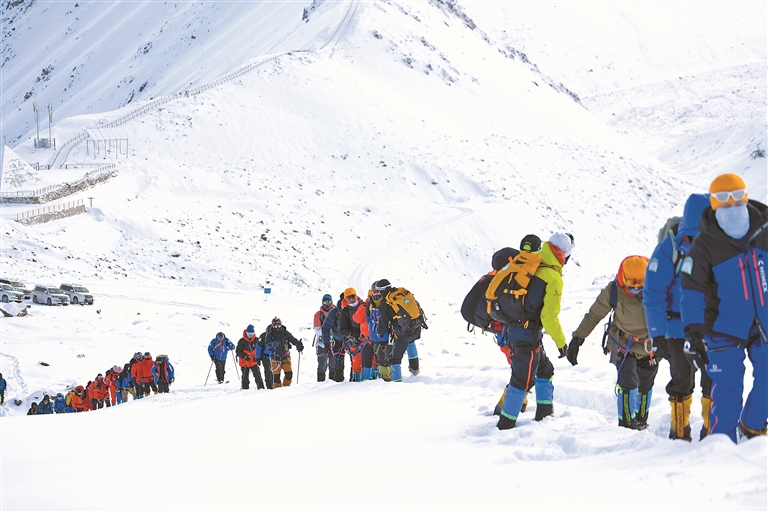 圖為5月2日,登山愛(ài)好者向洛堆峰峰頂進(jìn)發(fā)(資料圖片)。本報(bào)記者 潘多 鄭璐 明吉 攝影報(bào)道