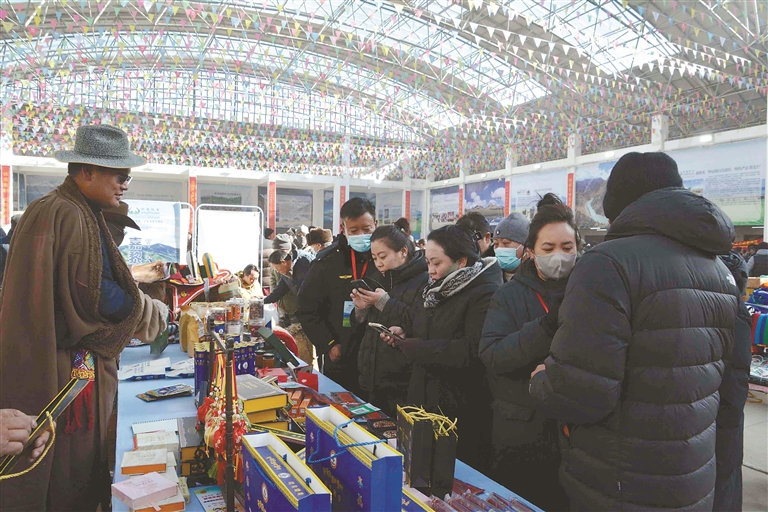 這次展銷會(huì)不僅線下熱鬧,線上也同樣火爆。為了讓各類產(chǎn)品走得更遠(yuǎn),展銷會(huì)特意搭建起“線上直播帶貨+線下現(xiàn)場(chǎng)選購(gòu)”的雙線銷售通道,一邊是線下市民現(xiàn)場(chǎng)挑、現(xiàn)場(chǎng)買,新鮮看得見(jiàn)、品質(zhì)摸得著;一邊是主播對(duì)著鏡頭,向全國(guó)網(wǎng)友推介那曲好物,讓遠(yuǎn)在千里之外的消費(fèi)者也能品嘗到那曲味道。同時(shí),展銷會(huì)還邀請(qǐng)電商平臺(tái)、采購(gòu)商代表和參展商精準(zhǔn)對(duì)接,幫本土農(nóng)畜產(chǎn)品打通銷路,再也不愁“酒香巷子深”;積極引導(dǎo)機(jī)關(guān)、企事業(yè)單位及社會(huì)各界參與消費(fèi)幫扶,以“以購(gòu)代扶”“以買促銷”的方式助力本土產(chǎn)業(yè)發(fā)展,在全市形成“人人支持本土產(chǎn)業(yè)、人人參與鄉(xiāng)村振興”的濃厚氛圍。