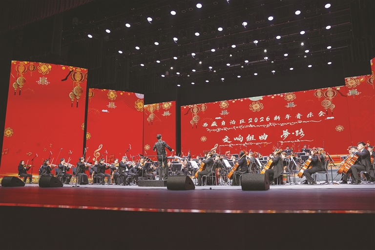 2025年12月30日晚8時(shí),西藏自治區(qū)2026新年音樂會在西藏大劇院奏響發(fā)展新聲。本場音樂會由西藏自治區(qū)黨委宣傳部指導(dǎo),自治區(qū)文化和旅游廳、西藏廣播電視臺主辦,西藏自治區(qū)歌舞團(tuán)、藏劇團(tuán)及西藏演藝有限責(zé)任公司承辦,特邀中央歌劇院指導(dǎo),西藏自治區(qū)歌舞團(tuán)、藏劇團(tuán)與中央歌劇院交響樂團(tuán)聯(lián)合演出,以“以古照今 樂動新年”為主題,將歷史厚重與時(shí)代溫度熔于一爐,為現(xiàn)場觀眾獻(xiàn)上兼具精神洗禮與藝術(shù)享受的聽覺盛宴,以文藝之姿迎接2026年的到來。