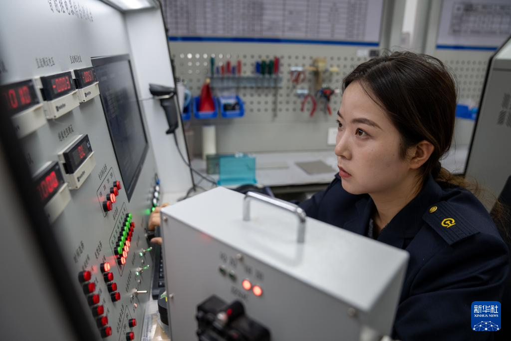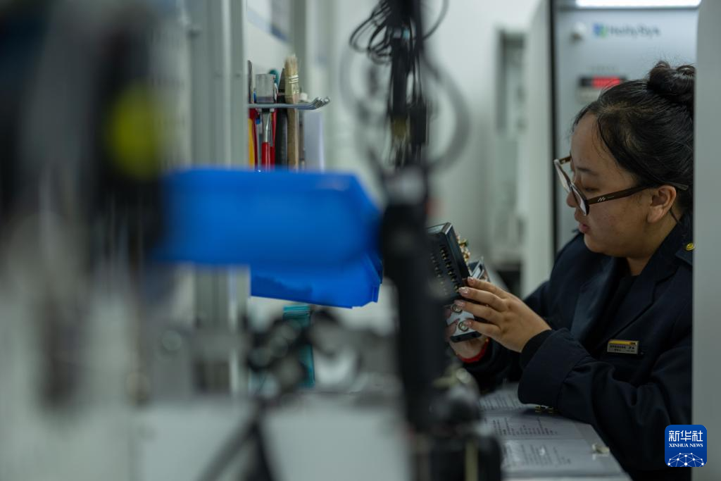 1月6日,拉薩基礎(chǔ)設(shè)施段電務(wù)專修車間繼電器檢修工區(qū)的信號工德吉卓瑪在檢測繼電器。新華社記者 旦增尼瑪曲珠 攝