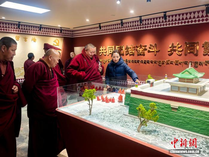 圖為桑耶寺僧人參觀桑耶寺鑄牢中華民族共同體意識(shí)教育館。曲桑 攝