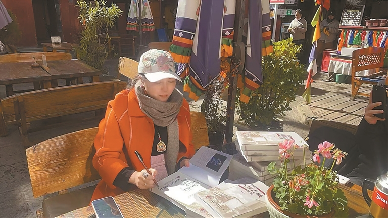 該書一經(jīng)出版,便在各社區(qū)銷售一空。次仁羅布、敖超、劉亮等多位教授學(xué)者紛紛閱讀并給出高度評(píng)價(jià)。西藏文聯(lián)黨組副主席、西藏作家協(xié)會(huì)主席次仁羅布說它“能觸摸到雪域古城非遺文化的溫潤(rùn)溫度,也能聽見百年古建沉淀的歲月回響?!蔽鞑刈灾螀^(qū)群眾藝術(shù)館黨組書記,西藏作家協(xié)會(huì)副主席,拉薩市作家協(xié)會(huì)主席敖超感慨道:“以細(xì)膩筆觸與嚴(yán)謹(jǐn)考據(jù)勾勒出八廓街的人文肌理,讓非遺技藝、古建院落與鮮活人物躍然紙上?!崩_市政協(xié)黨組成員、副主席,八廓古城黨工委書記劉亮更是直夸:“滿格格用20多萬字的深情書寫,為讀者打開了讀懂八廓街的密鑰,也讓高原文化的獨(dú)特魅力在文字中得以永恒留存?!?/p>
