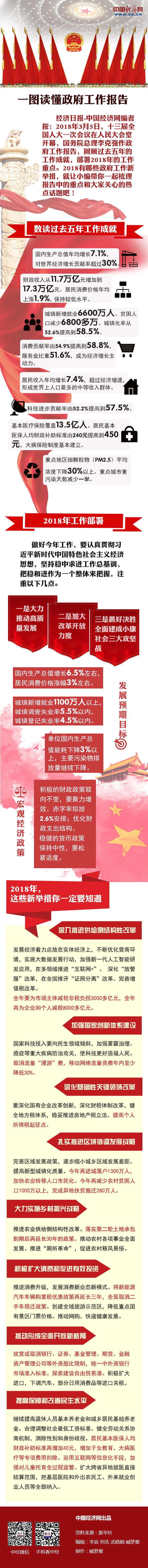 編者按: 2018年3月5日,十三屆全國(guó)人大一次會(huì)議在人民大會(huì)堂開幕,國(guó)務(wù)院總理李克強(qiáng)作政府工作報(bào)告,回顧過去五年的工作成就,部署2018年的工作重點(diǎn)。2018有哪些政府工作新舉措,就讓小編帶你一起梳理報(bào)告中的重點(diǎn)和大家關(guān)心的熱點(diǎn)話題吧!