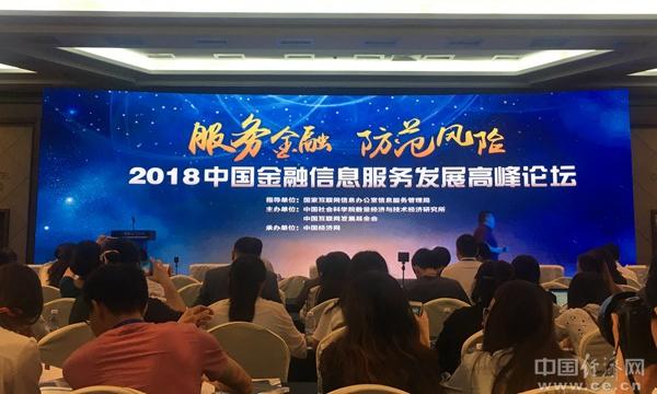 圖為由國家互聯(lián)網(wǎng)信息辦公室信息服務(wù)管理局指導(dǎo),中國社會(huì)科學(xué)院數(shù)量經(jīng)濟(jì)與技術(shù)經(jīng)濟(jì)研究所、中國互聯(lián)網(wǎng)發(fā)展基金會(huì)聯(lián)合主辦,中國經(jīng)濟(jì)網(wǎng)承辦的“2018中國金融信息服務(wù)發(fā)展高峰論壇”。經(jīng)濟(jì)日?qǐng)?bào)-中國經(jīng)濟(jì)網(wǎng) 甄紅南/攝