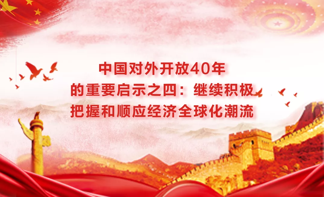 【編者按】經(jīng)濟(jì)全球化是不可逆轉(zhuǎn)的歷史大勢,為世界經(jīng)濟(jì)發(fā)展提供了強(qiáng)勁動力。改革開放40年,中國把握和順應(yīng)經(jīng)濟(jì)全球化歷史大勢,在開放中探索,在開放中奮進(jìn),逐步實現(xiàn)從“趕上時代”到“引領(lǐng)時代”的偉大跨越。在慶祝改革開放40周年之際,為了深刻總結(jié)中國對外開放40年重要啟示,中國理論網(wǎng)精心推出《繼續(xù)積極把握和順應(yīng)經(jīng)濟(jì)全球化潮流》一文,以饗讀者。