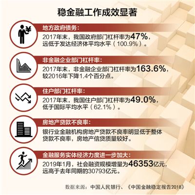 穩(wěn)金融政策。去年底召開(kāi)的中央經(jīng)濟(jì)工作會(huì)議指出,穩(wěn)健的貨幣政策要松緊適度,保持流動(dòng)性合理充裕,改善貨幣政策傳導(dǎo)機(jī)制。這釋放了穩(wěn)金融政策的明確信號(hào)。當(dāng)前,應(yīng)注意以下幾個(gè)方面:一是暢通利率傳導(dǎo)渠道。要把握貨幣政策最終目標(biāo),繼續(xù)推進(jìn)利率市場(chǎng)化改革,強(qiáng)化貨幣政策前瞻性指引作用。二是提高貨幣政策的信貸傳導(dǎo)效率。商業(yè)銀行在貨幣政策信貸傳導(dǎo)中扮演著重要角色,提高貨幣政策的信貸傳導(dǎo)效率就要強(qiáng)化競(jìng)爭(zhēng),提高商業(yè)銀行市場(chǎng)化經(jīng)營(yíng)水平,提高商業(yè)銀行信貸資源配置效率和風(fēng)險(xiǎn)管理能力,減少地方政府部門對(duì)商業(yè)銀行的不當(dāng)干預(yù)。三是注重貨幣政策與財(cái)政政策協(xié)調(diào)配合。在實(shí)施穩(wěn)健的貨幣政策的同時(shí),充分發(fā)揮財(cái)政政策的作用,通過(guò)大規(guī)模減稅降費(fèi)降低企業(yè)成本,激發(fā)企業(yè)投資意愿,引導(dǎo)企業(yè)對(duì)我國(guó)經(jīng)濟(jì)平穩(wěn)增長(zhǎng)的預(yù)期。同時(shí),在控制債務(wù)規(guī)??偭康那疤嵯拢^大幅度增加地方政府專項(xiàng)債券規(guī)模,穩(wěn)妥處理地方政府債務(wù)風(fēng)險(xiǎn)。