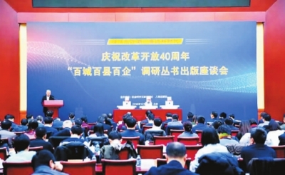 全國社科系統(tǒng)數(shù)千名專家學(xué)者深入100個縣區(qū)、100個城市和100個企業(yè)開展慶祝改革開放40周年大調(diào)研,取得豐碩成果。圖為成果座談會現(xiàn)場。中國社會科學(xué)院科研局供圖