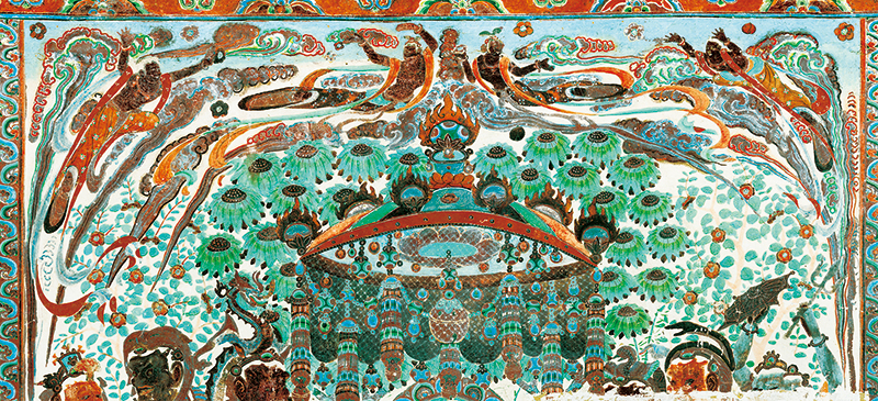 敦煌是古代中國認(rèn)識(shí)世界的前沿,也是當(dāng)時(shí)世界了解中國的窗口之一。在這里,來自印度、希臘、波斯等國家和中亞地區(qū)的文化,與中國文化平等對(duì)話,在交流融合中不斷創(chuàng)新、不斷進(jìn)步,使其成為中西文明交往的樣板。圖為敦煌莫高窟第320窟的壁畫。 敦煌研究院供圖