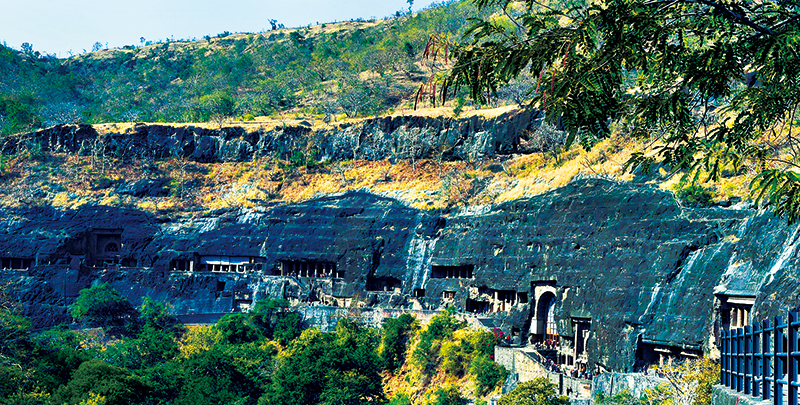 印度阿旃陀石窟鑿于一處馬蹄形暗色巖陡崖上,其形成年代主要分為兩個(gè)時(shí)期:公元前2世紀(jì)至公元前1世紀(jì)和公元5至6世紀(jì)。它集古代建筑、雕刻、繪畫之大成,融佛教信仰、文化變遷、社會(huì)生活于一體,既具有極高的藝術(shù)價(jià)值,又飽含深厚的歷史底蘊(yùn)。圖為在印度馬哈拉施特拉邦拍攝的阿旃陀石窟外景。 新華社記者 張迺杰/攝
