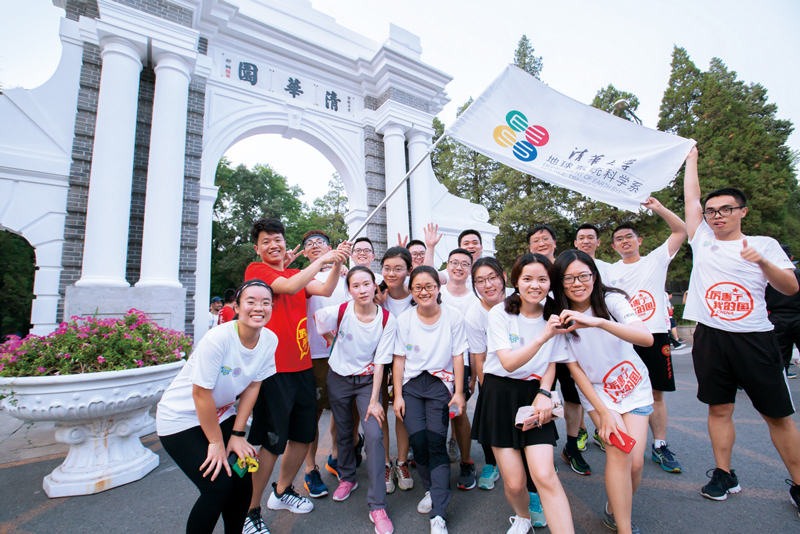 每年的畢業(yè)季,清華大學(xué)都會舉行畢業(yè)長跑,即將離開母校的學(xué)子們沿著精心設(shè)計的路線,依次跑過那些承載著清華記憶的場所,重溫“自強(qiáng)不息 厚德載物”的校訓(xùn),上好離校前的“最后一課”。圖為2018年7月4日,畢業(yè)生們在主題為“擁抱新時代 青春正起航”的長跑活動中在二校門前合影。 清華大學(xué) 李浩然/攝