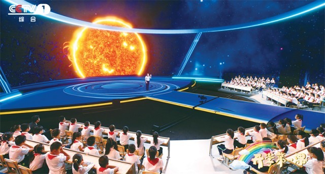 2023年《開學(xué)第一課》以“強(qiáng)國復(fù)興有我”為主題,從傳統(tǒng)文化、文明探源、生態(tài)文明、鄉(xiāng)村振興、國防教育、科技創(chuàng)新等多個方面,全景展示中國式現(xiàn)代化的萬千氣象。圖為中國科學(xué)院高能物理研究所研究員、“拉索”(LHAASO)首席科學(xué)家曹臻在向同學(xué)們介紹世界上海拔最高、規(guī)模最大的宇宙射線觀測裝置“拉索”的前世今生。 教育部供圖