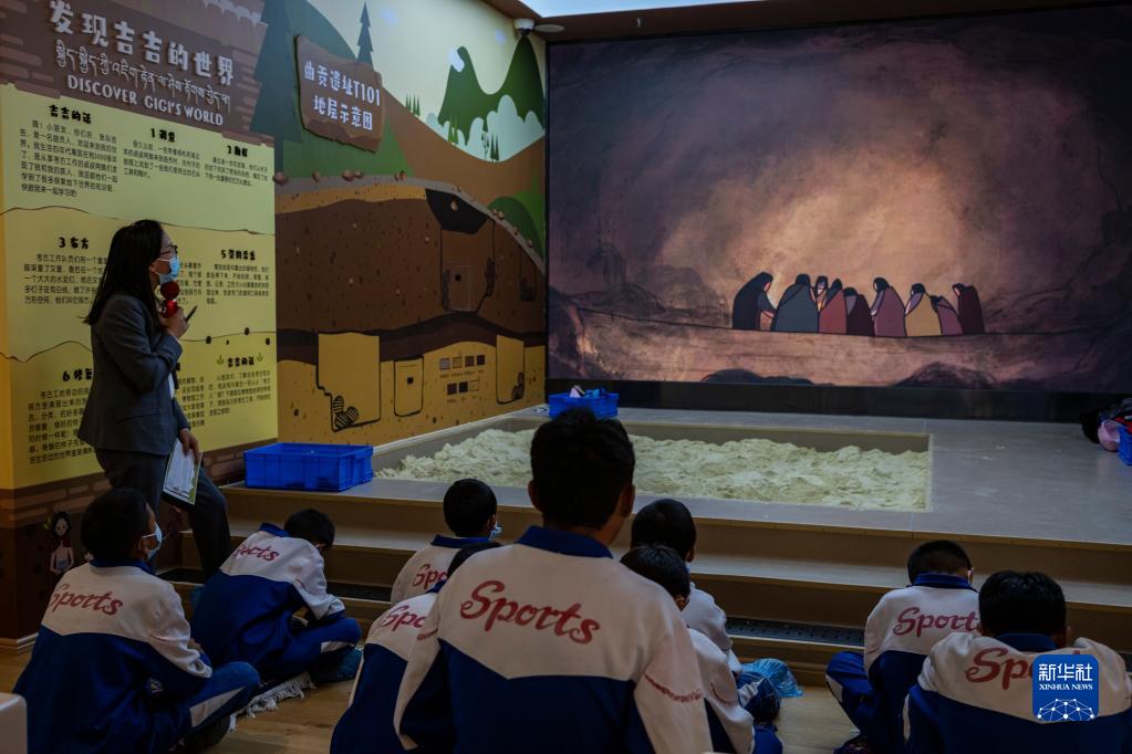 7月8日,講解員在西藏博物館新館為觀眾講解。新華社記者 晉美多吉 攝